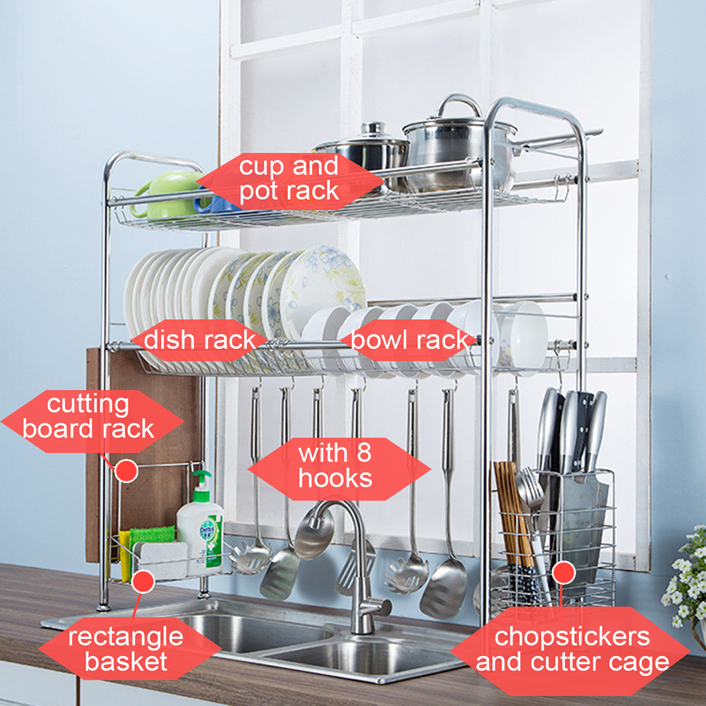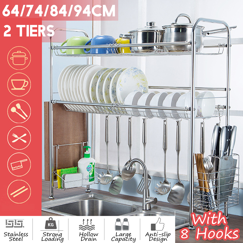 64/74/84/94cm Stainless Steel Rack Shelf Double Layers Storage for Kitchen Dishes Arrangement