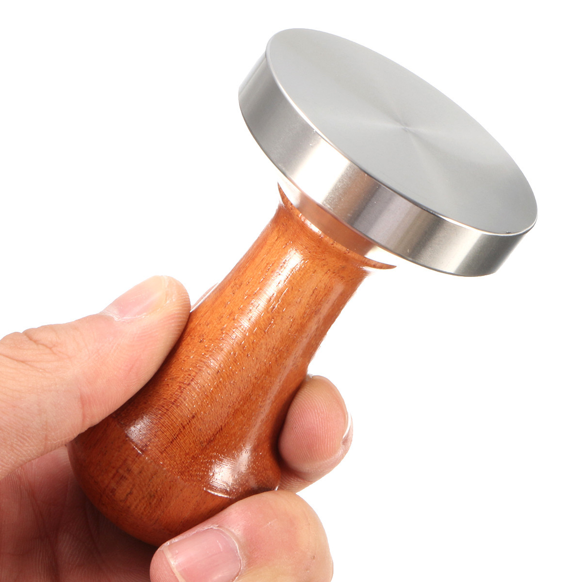 53mm Stainless Steel Cafe Coffee Tamper Bean Press for Espresso Flat Base Wooden Handle
