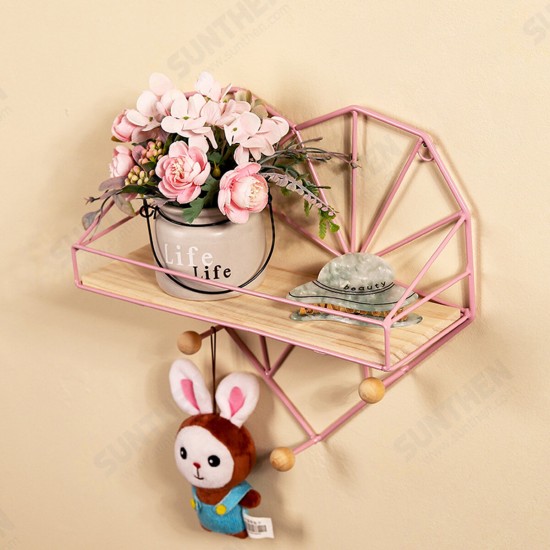 Heart Shaped Metal Wire & Wooden Rack Wall Unit Hanging Shelf