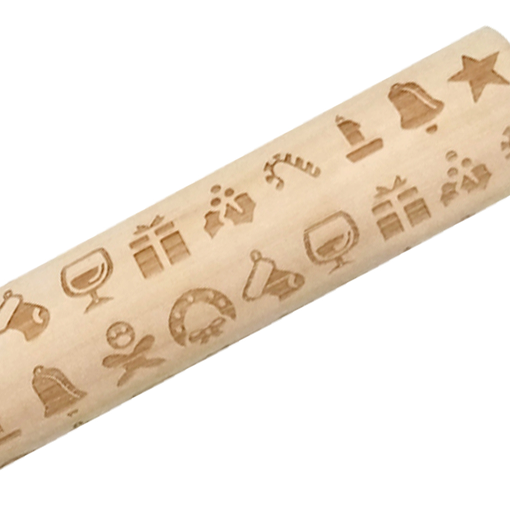 JM01687 Wooden Christmas Embossed Rolling Pin Dough Stick Baking Pastry Tool New Year Christmas Decoration