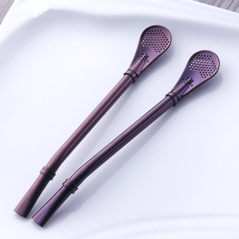 KC-STR15 3 in 1 Multifunction Stainless Steel Filtering Drink Straw Tea Spoon Tea Filter Milks