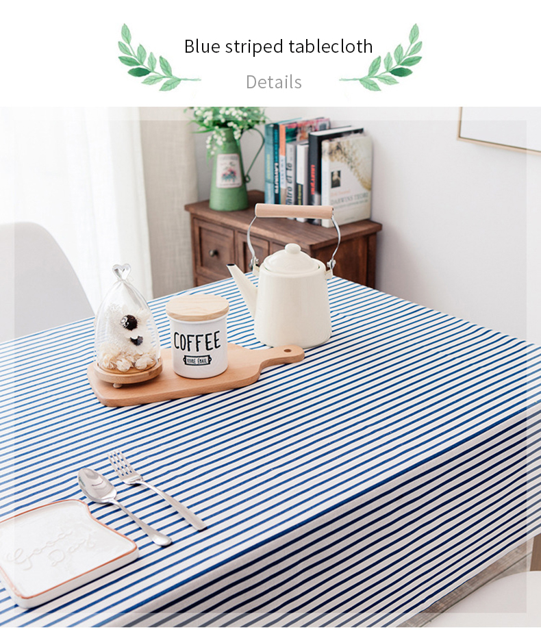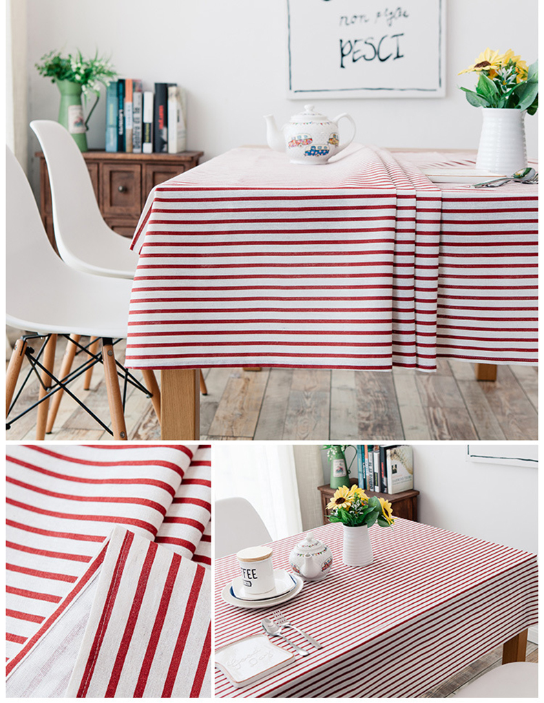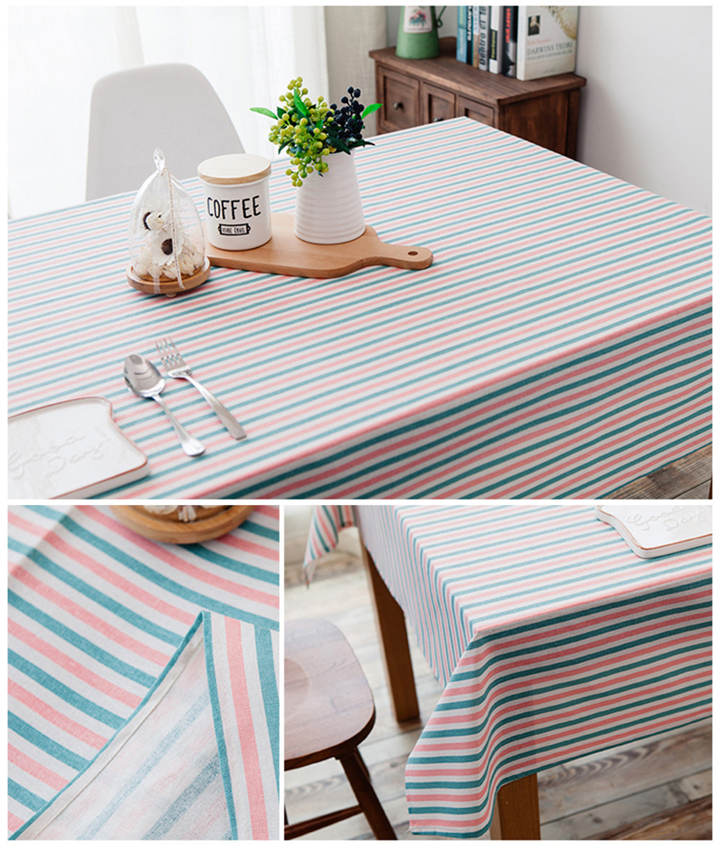 Cotton and Linen Simple Pastoral Tablecloth Geometric Tectangular Table Cover with Color Stripes