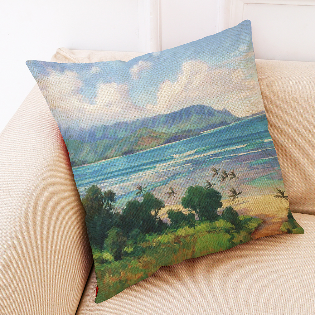 45x45cm Home Decoration Colorful Beach Patterns Cotton Linen Pillow Case Sofa Cushion Cover