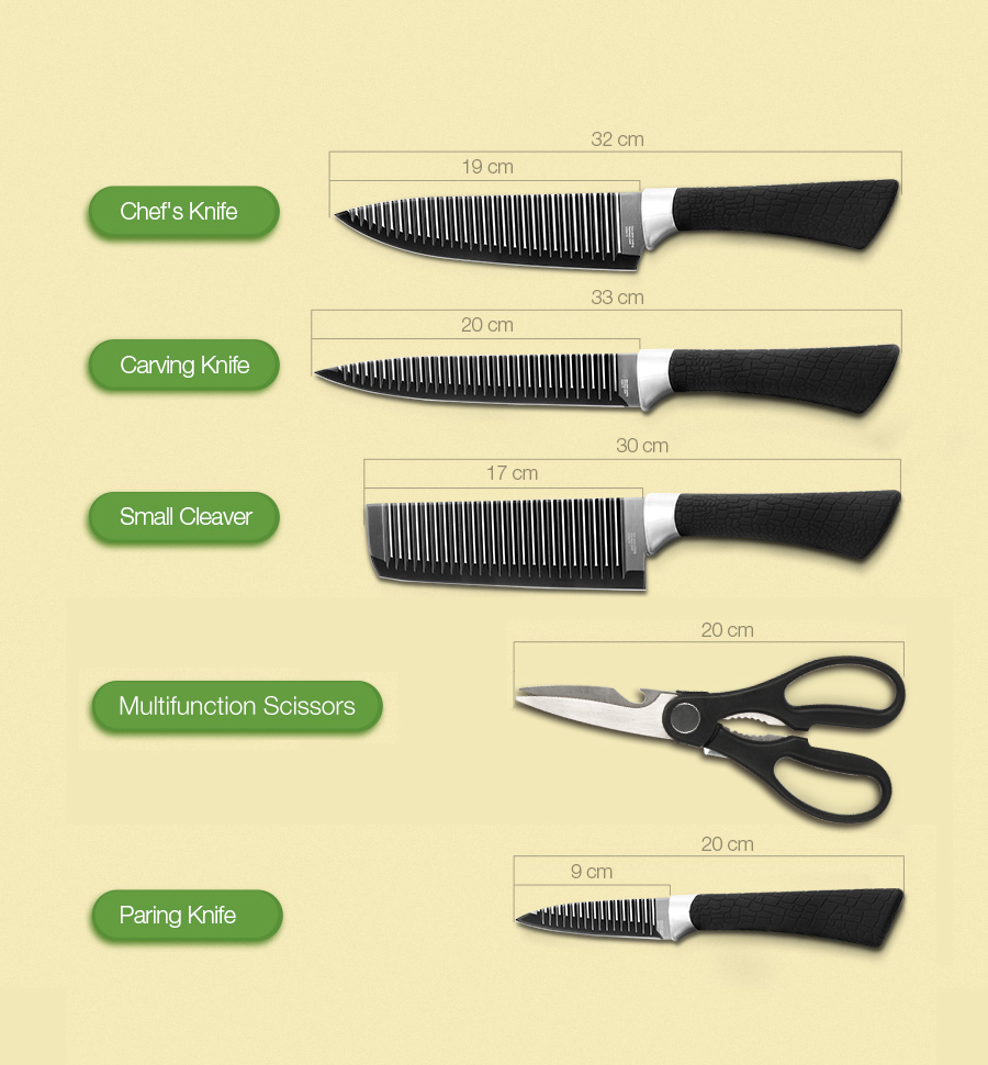 3Cr13II stainless steel kitchen knife set is made of 3Cr13, ABS and PP material. Aim to save your strength and easy your kitchen