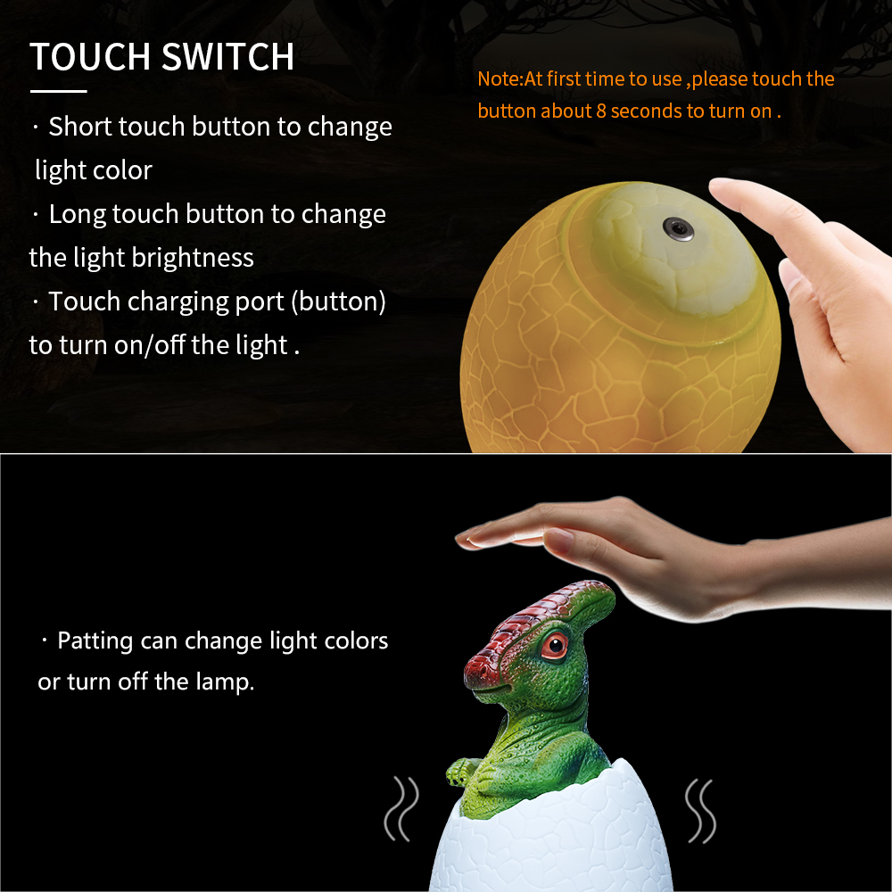 KL-02 Decorative 3D Deputy Dinosaur Egg Smart Night Light Touch Switch 3 Colors Change LED Nightlight For Christmas Gifts