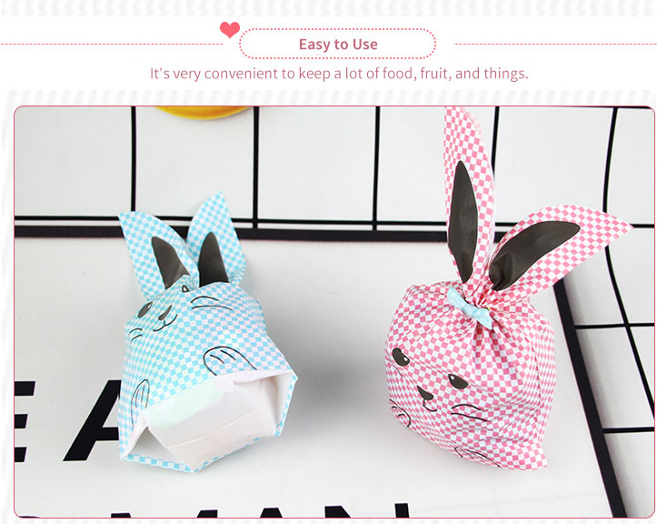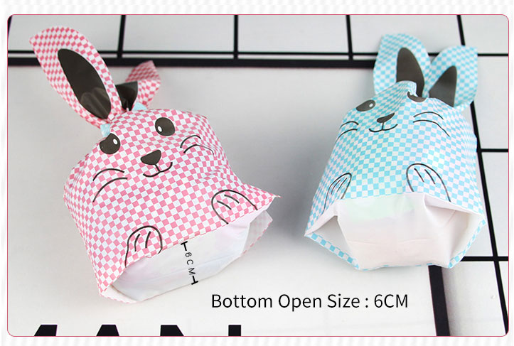 50Pcs/Lot Pink and Blue Cute Rabbit Cookie Bags Plastic Candy Snack Packing Bag Wedding Candy Gift Self-adhesive Plastic Packing Bags