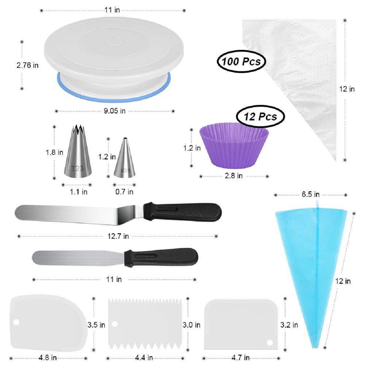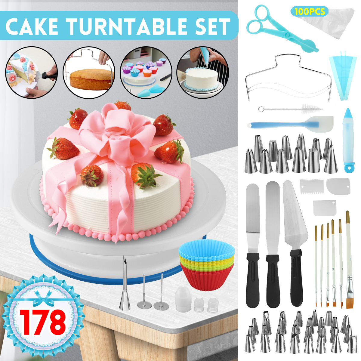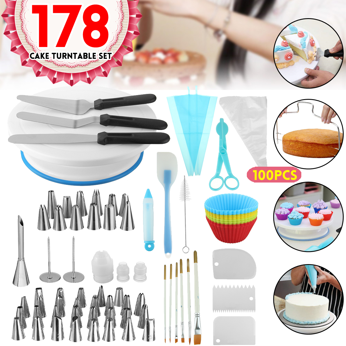 178pcs Cake Decorating Tool Kit Baking Fondant Supply Turntable Bag Tip Spatula