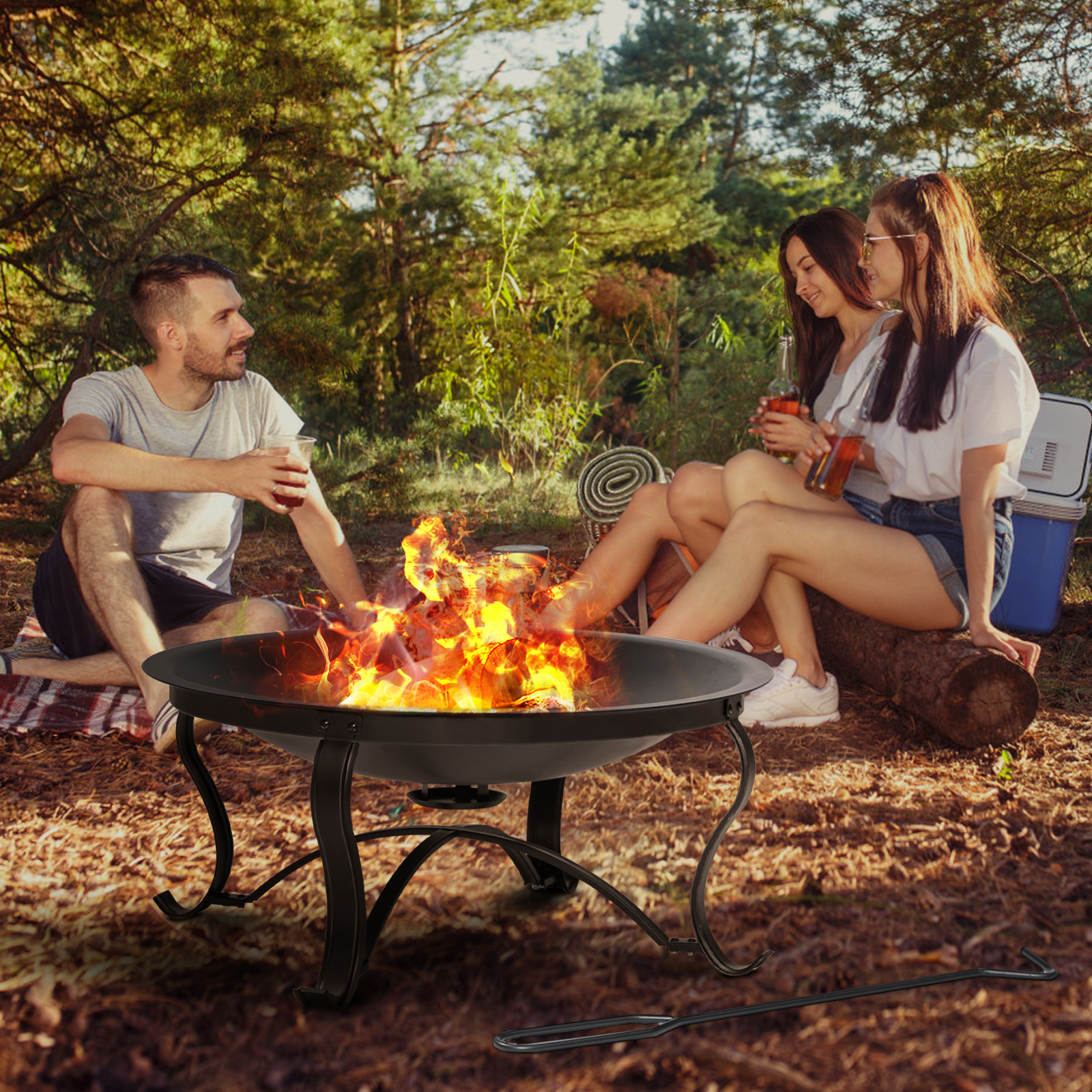 30 inch Fire Pits Steel Wood Burning Firepit with Ash Plate Spark Screen Log Grate Poker