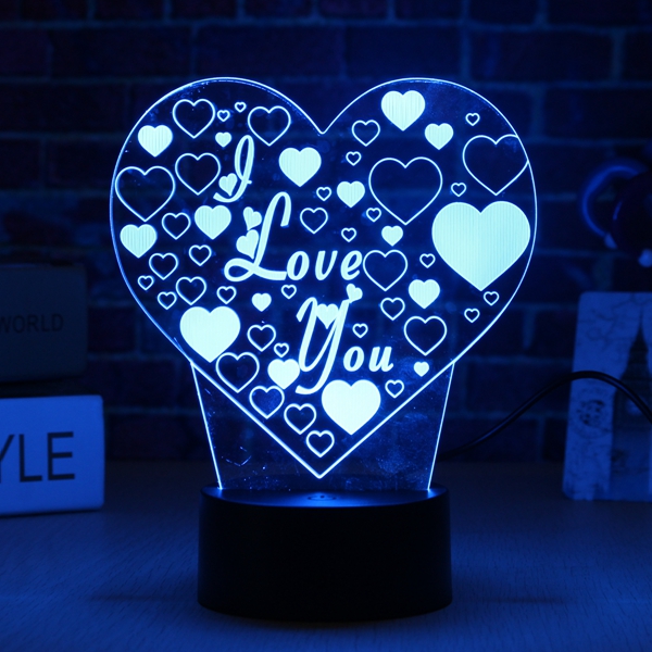 LED 3D Colorful I Love You Night Light Remote Control Touch Sensor Desktop Lamp