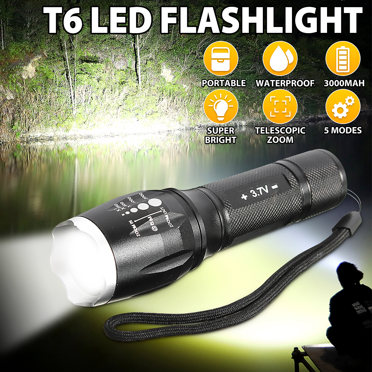 1000 Lumen Tactical T6 LED Zoomable Flashlight Torch Lamp