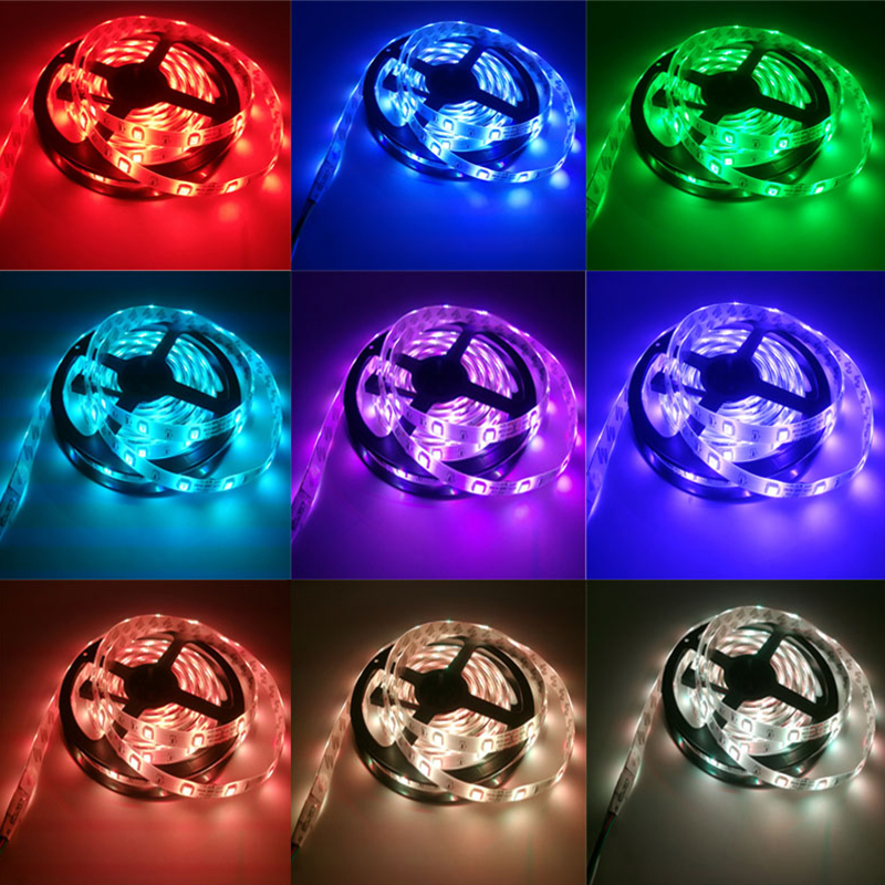 * Multi-Color & DIY: LED tape strips lights set will change colors and speed automatically and periodically. It has not only RGB (Red,Green,Blue),white color, 16 static colors, 6 modes options, but also has 6 kinds DIY selection to create your great led mood lighting.