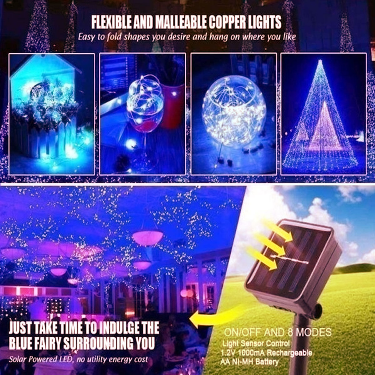 300/400 LED Waterproof Colorful Light Fairy String Rope Solar Lights Outdoor