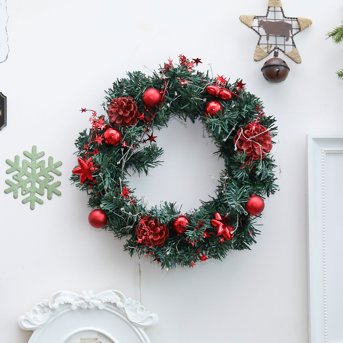-Each wreath come with 1 string of 5 meter long string light, pre-strung with 50 LED lights, energy efficient and long lasting.