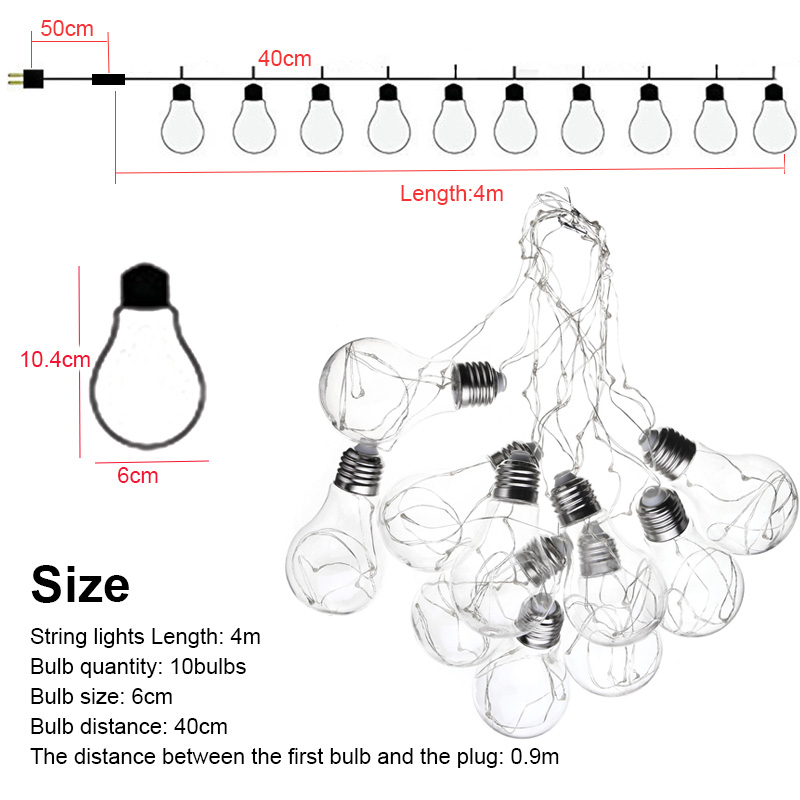 4M 10LEDs Bulb Shaped Indoor Outdoor Fairy String Light for Christmas Party AC100V-240V