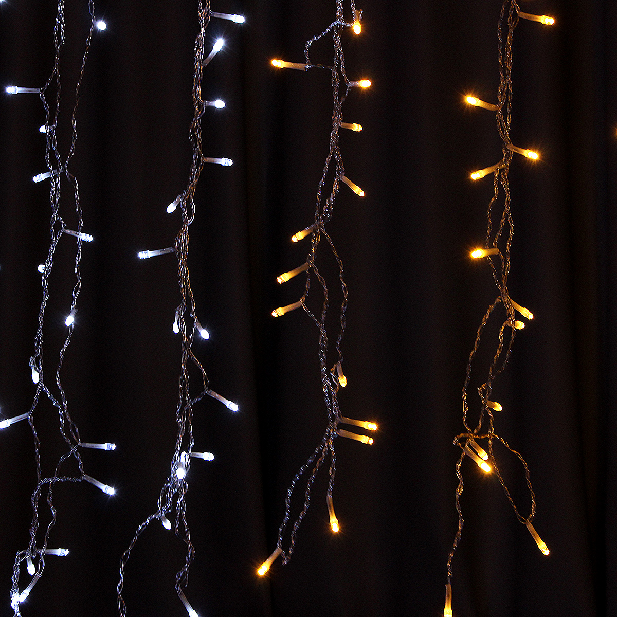 Feature: White translucent organza fabric exhibits the radiant strings of light as sparkling and rippling beams, oozing an empyrean glimmer and shimmer all around, as if they were twinkling stars in the sky, or candles with flickering flames.
