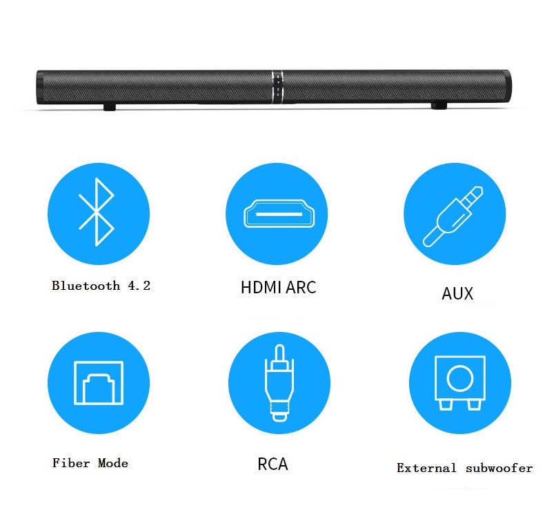 Support: Bluetooth, AUX3.5mm, HDMI ARC, OPT fiber, USB