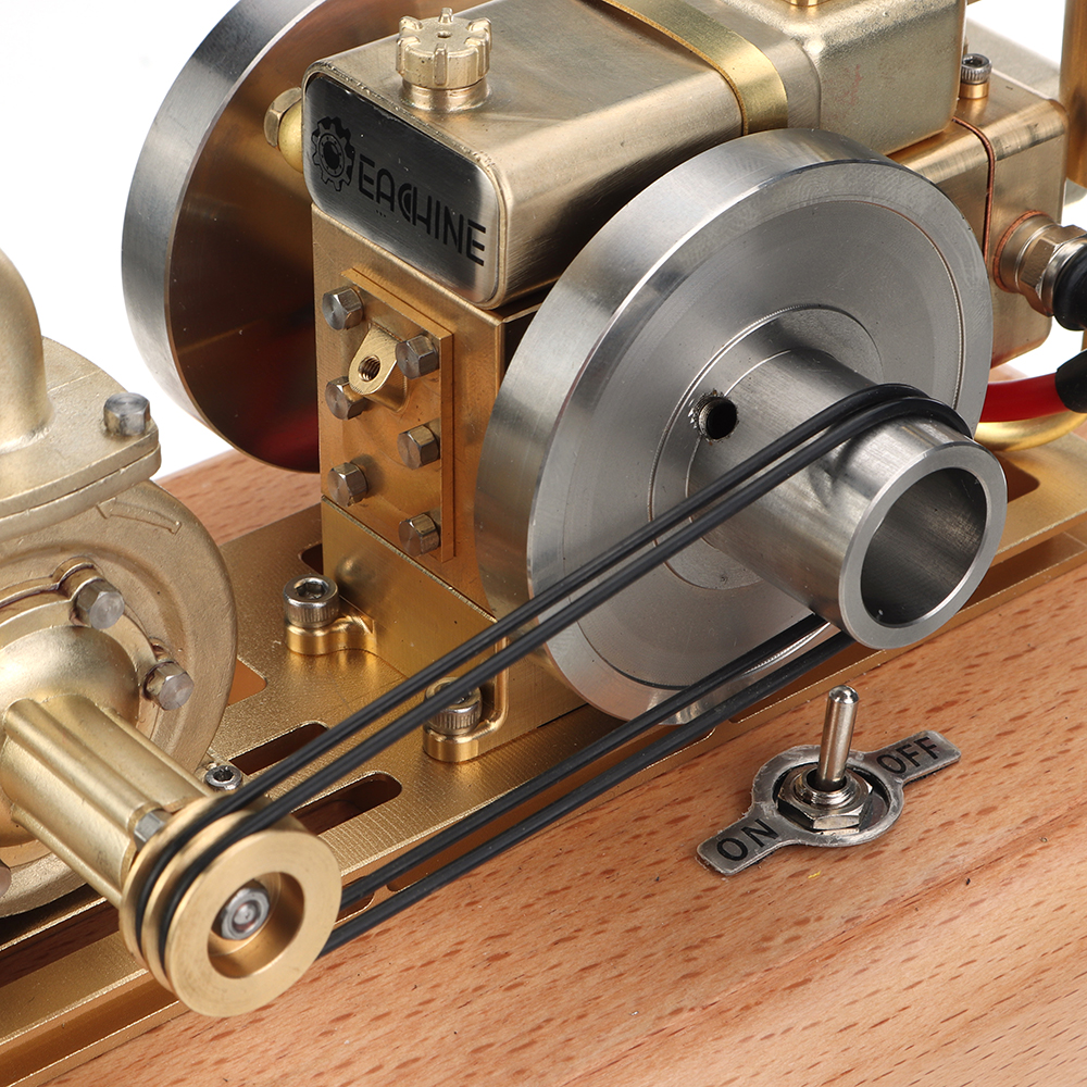 This is a mini engine. It is made of brass and stainless steel. Water-cooled cooling structure. The bore is 13MM. The stroke is 12MM. The carburetor with adjustable speed is used. The ignition is powered by 1.5V power supply.