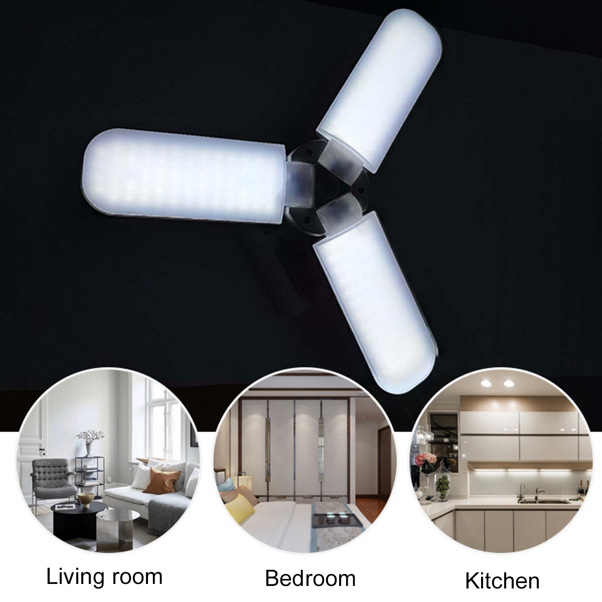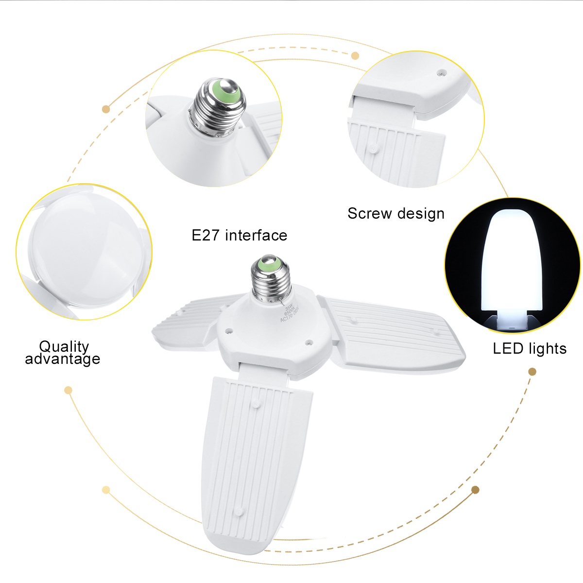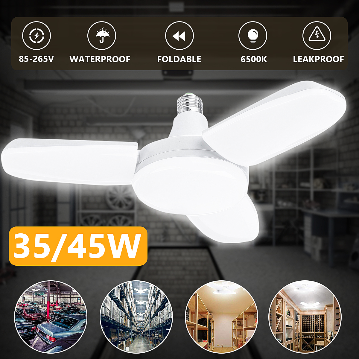 AC85-265V 35W/45W E27 Deformable LED Garage Light Foldable Fan Three-Blade Ceiling Workshop Lamp Bulb
