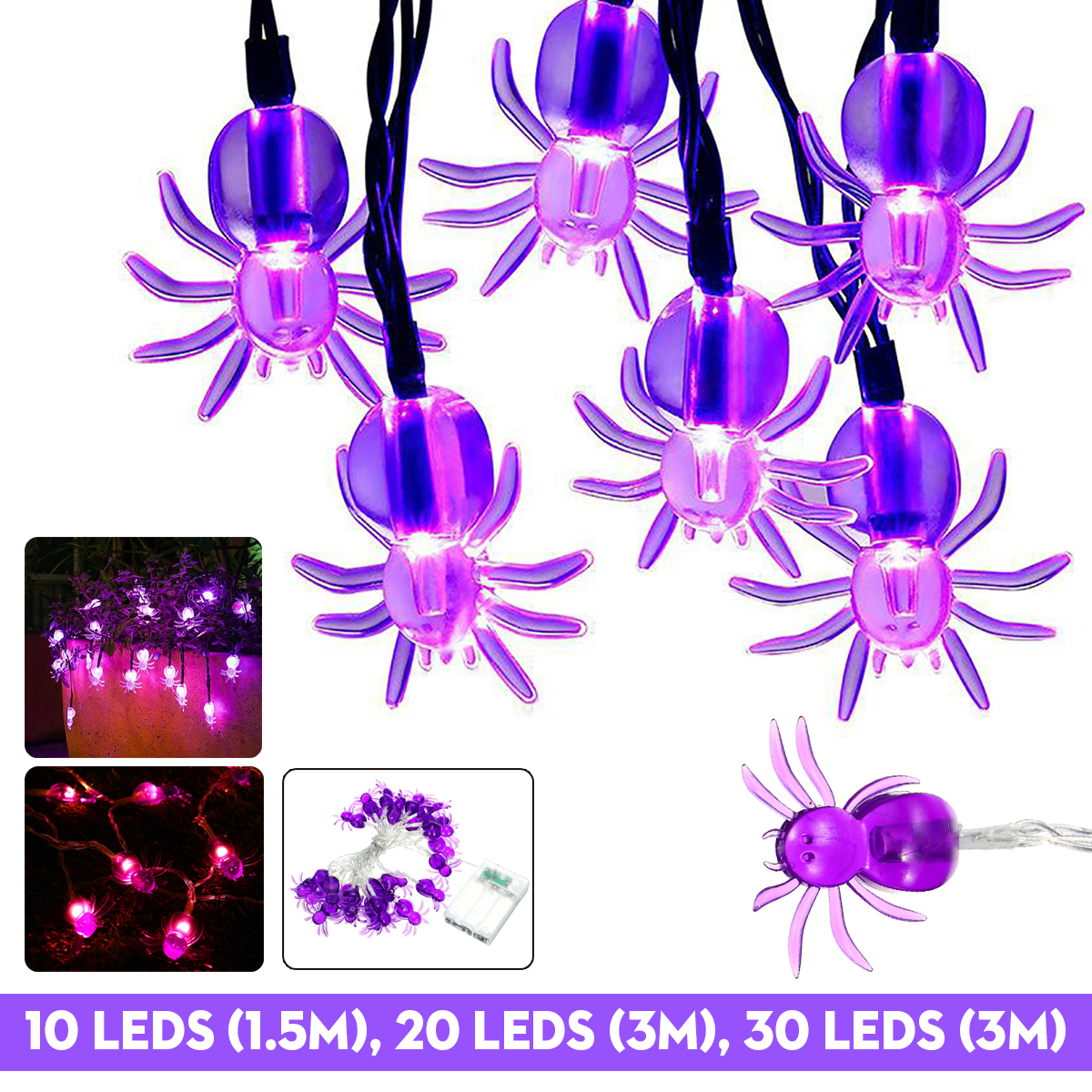 1.5M/3M Halloween LED Spider String Fairy Light Party Night Hanging Lamp Home Decor