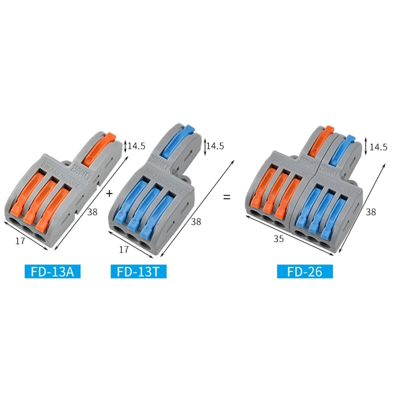 FD-13A/FD-13T Wire Connector 1 In 3 Out Wire Splitter Terminal Block Compact Wiring Cable Connector Push-in Conductor