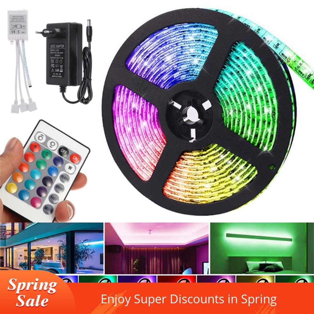 12V LED Light Strip 15M 5050 RGB LED Tape Lights RGB Rope Lights 16 Million Colors Flexible Changing with Remote Christmas Decorations Lights