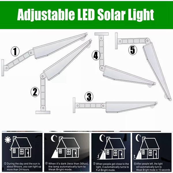 Solar powered Motion Sensor 48 LED Street Light Waterproof Adujustable Wall Lamp for Outdoor Garden