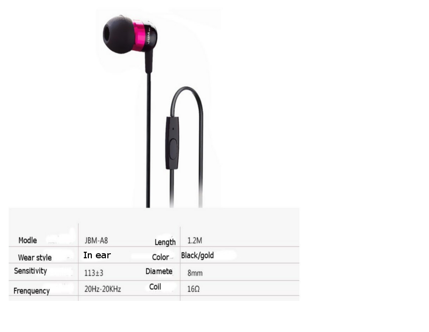 | 1 X JBM-A8 Earphone |
