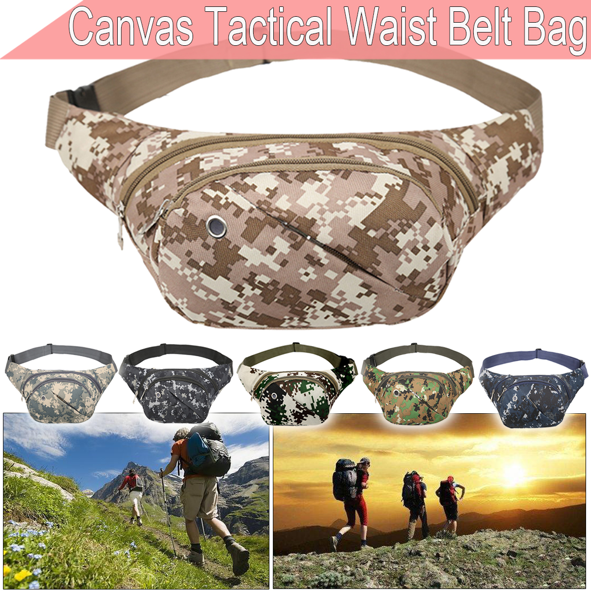 Mens Tactical Waist Bag Military Canvas Waist Bag Travel Hiking Storage Bag Camping Belt Bag