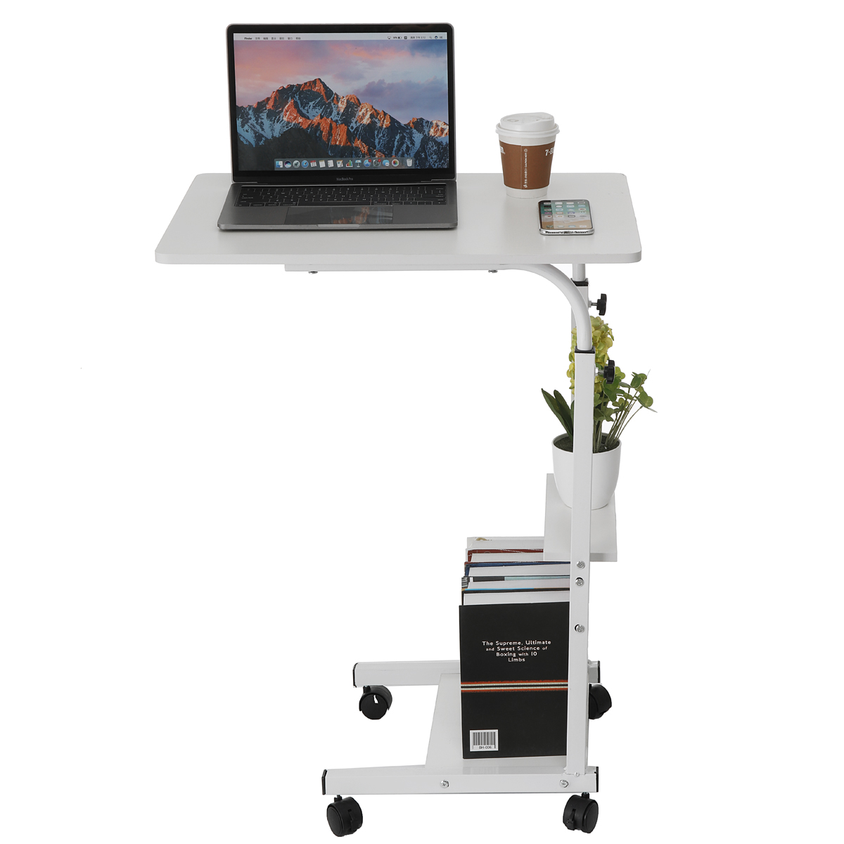 Movable Laptop Desk Adjustable Height Computer Notebook Desk Writing Study Table Bedside Tray with 2 Storage Shelves Home Office Furniture