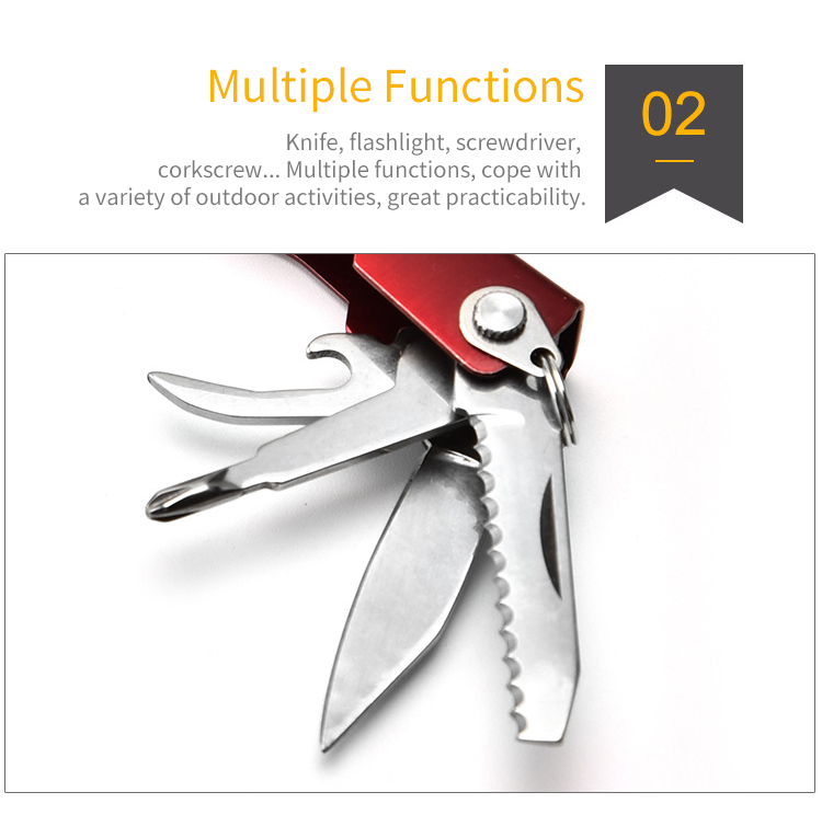 It can be used as LED flashlight, jaw, can opener, phillips screwdriver, blade, knife, ect, meet various needs in your daily life.