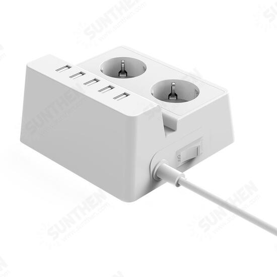 NTONPOWER 2 AC Outlets 5 USB Port EU Plug USB Power Socket - Turn One outlet into two with the EU Plug USB Power Socket, provide a total power output of 4000W