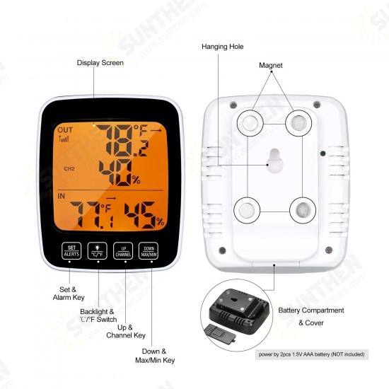 Easy Operation: designed with 4 touch buttons for easily operating, such as ON/OFF backlight, ℃/°F unit switching, UP/DOWN adjusting, alerts value setting, etc.