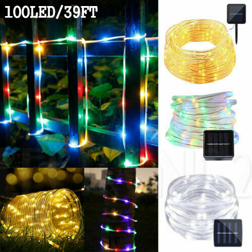 39FT 100 LED Solar String Rope Fairy Light Waterproof Xmas Wedding Party Decor Night Light