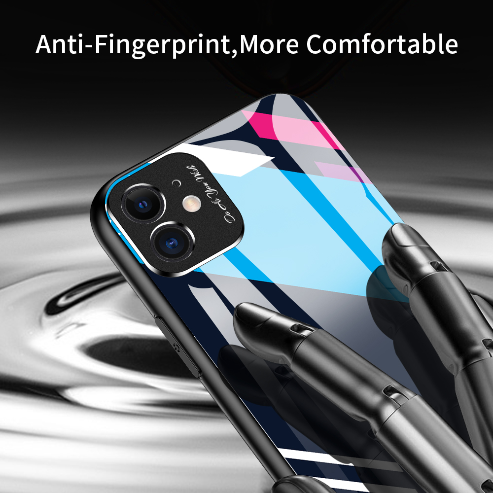 Oil Painting Colorful Glossy Tempered Glass with 3D Metal Matte Lens Ring Shockproof Protective Case for iPhone 11 6.1 inch