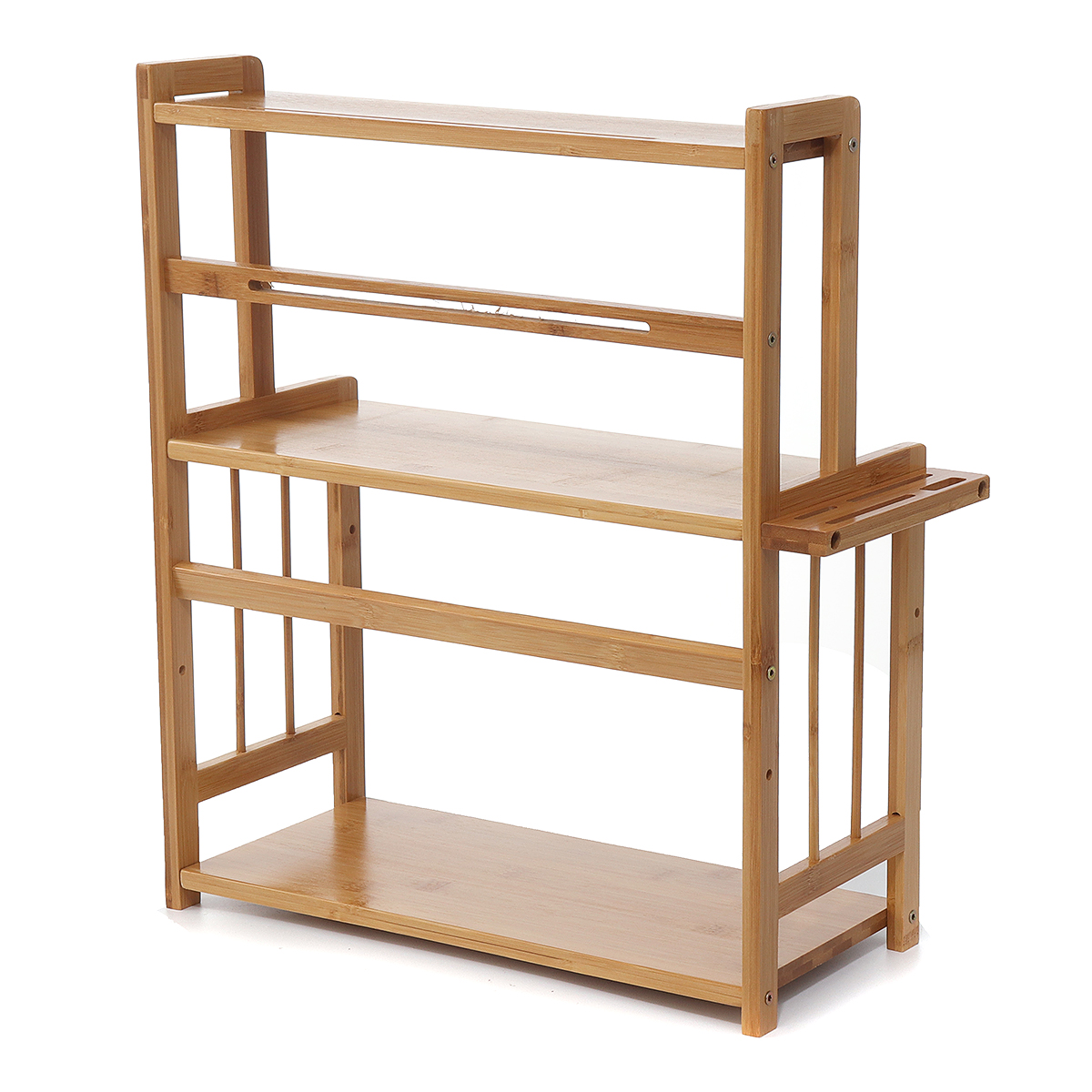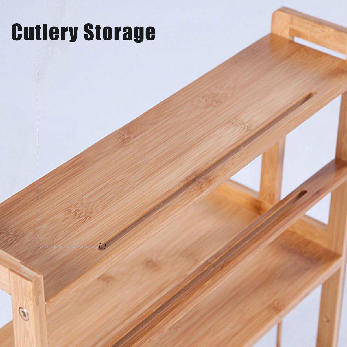 3 in 1 Bamboo Storage Rack: When cooking or baking, keep pots, jars, condiments, jars, spices, spoons, spatulas, cutting boards in easy-to-see places. It can also be used as a desktop bookshelf, cosmetic storage box, bathroom shelf and plant shelf, and store anything you want.