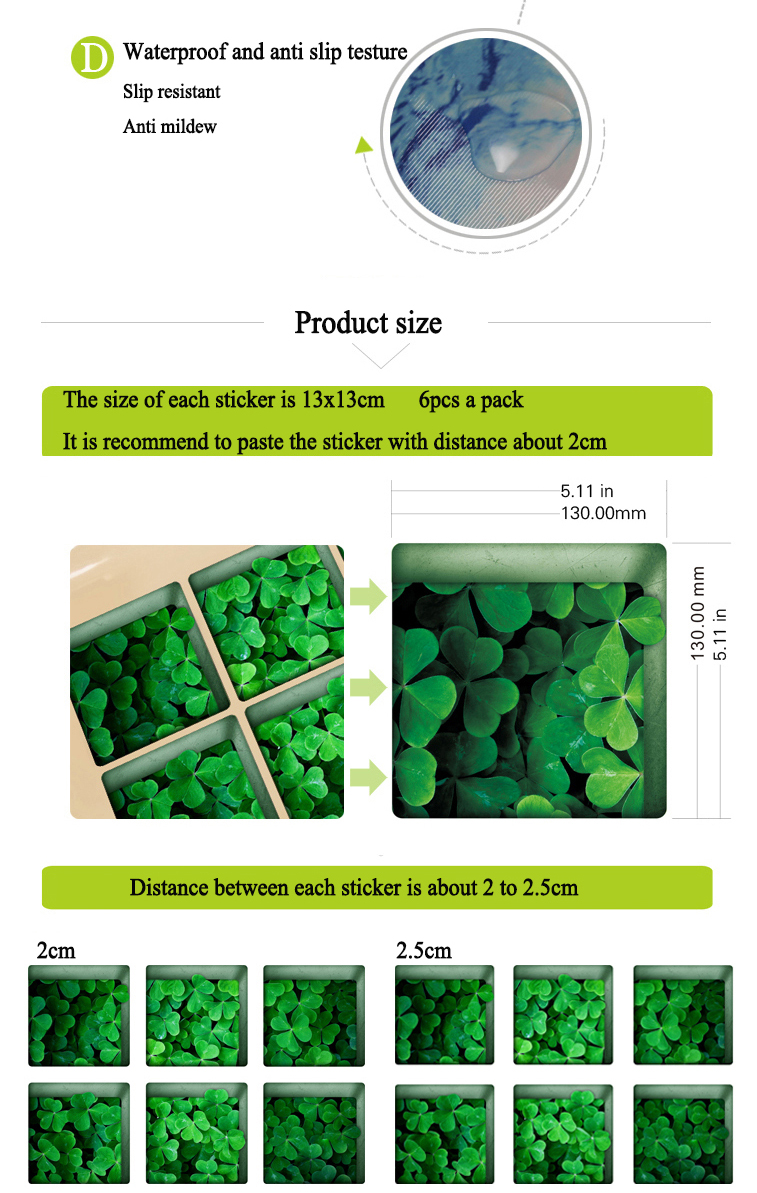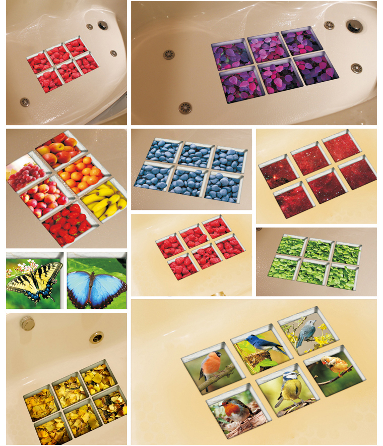 PAG 6pcs 13x13cm Water Shadow Ocean/Forest Seires Pattern 3D Non-Slip Waterproof Bathtub Mat Sticker