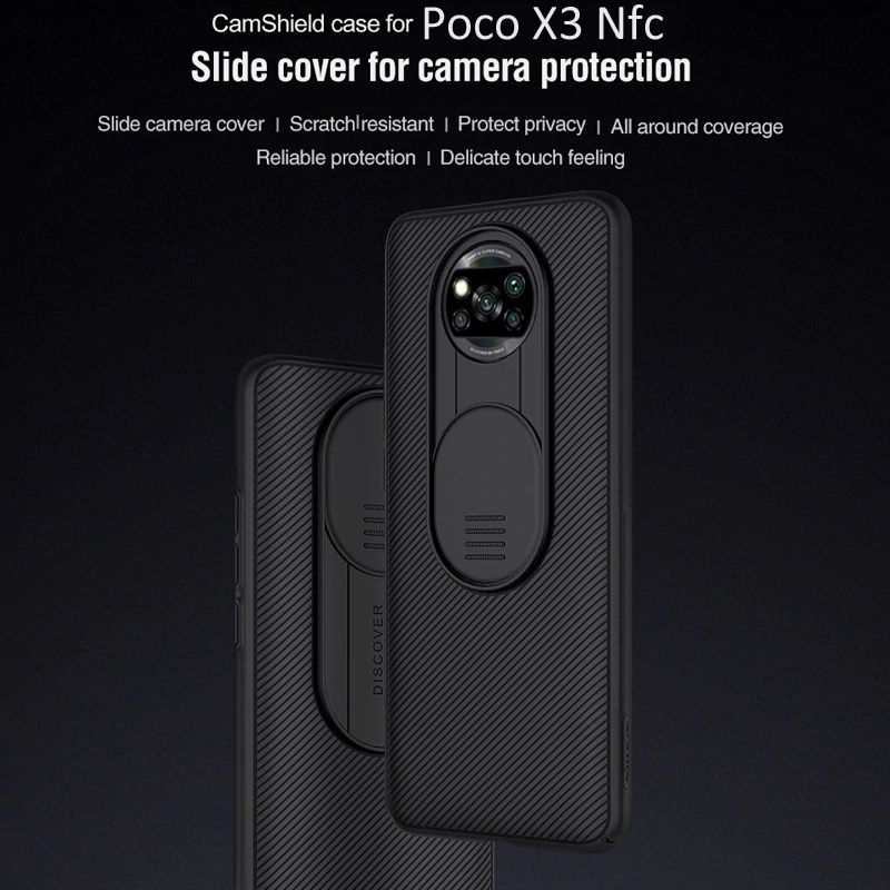 X3 Pro/ POCO X3 NFC Accessories Bumper with Slide Lens Cover Protective Case + Anti-Explosion Tempered Glass Screen Protector Non-Original