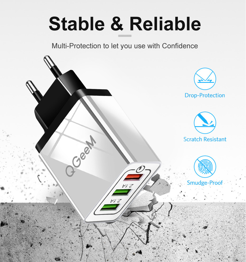 QG-CH04 27W 3 USB Travel Wall Charger Adapter QC3.0 Fast Charging For iPhone XS 11Pro Huawei P30 P40 Pro MI10 Note 9S S20+ Note 20