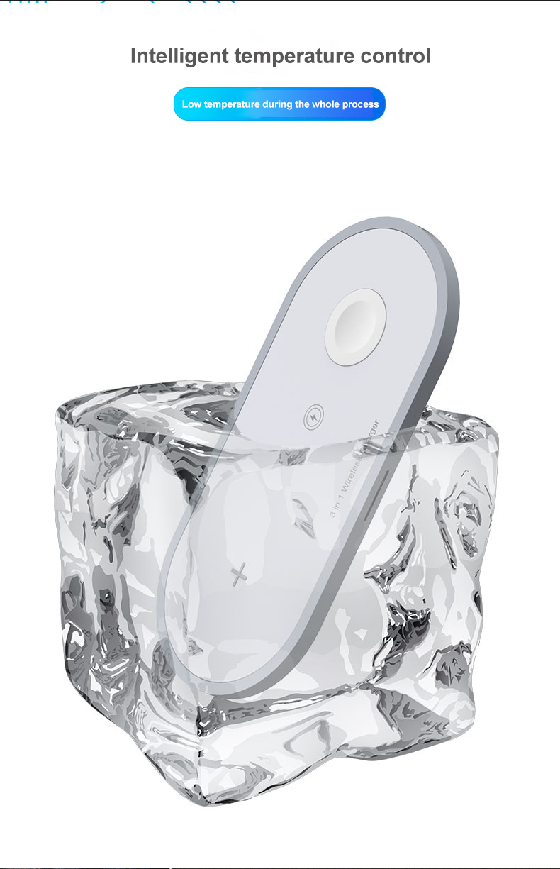 1.The 3 in 1 wireless charging station is made of a PC+ABS case of high quality, powerful sturdy and durable, with a non-slip silicone pad at the bottom.