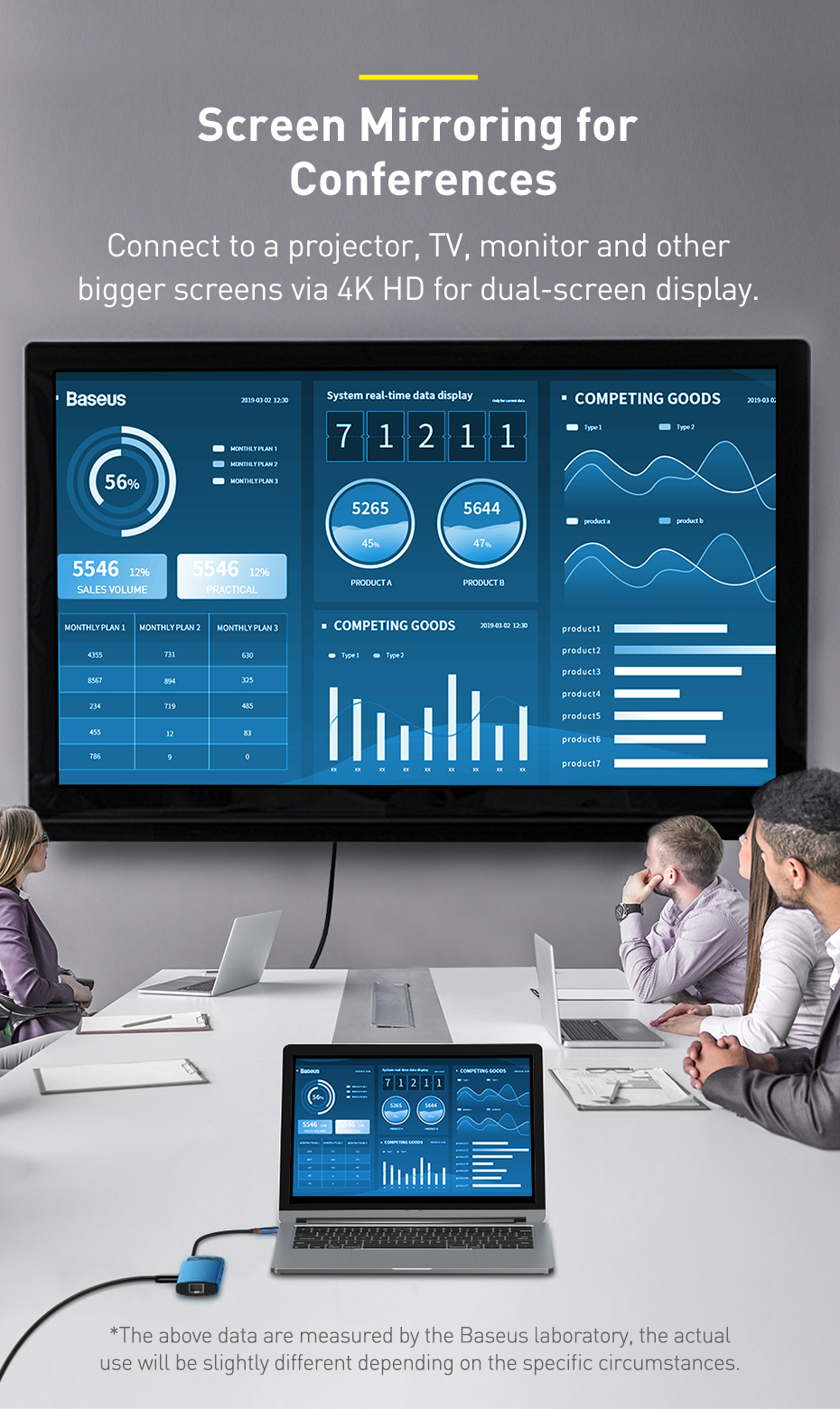 Connect to a projector, TV, monitor, etc. for 4K HD screen mirroring.