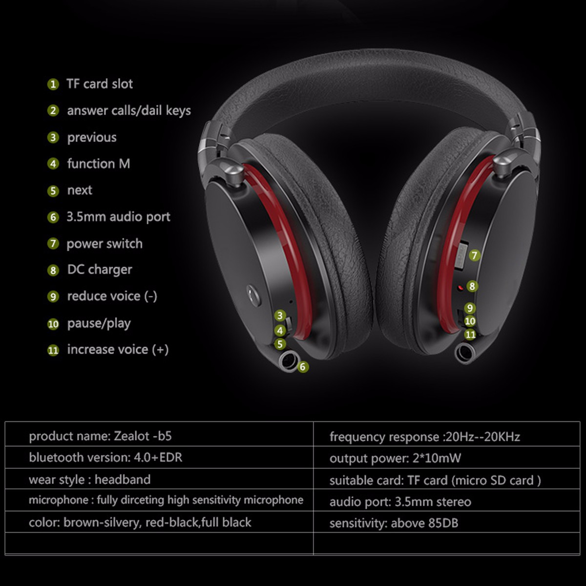 B5 bluetooth Headset BT5.0 Wireless Headphone Long Life HiFi Stereo Powerful Bass Low latency Earphone with Mic