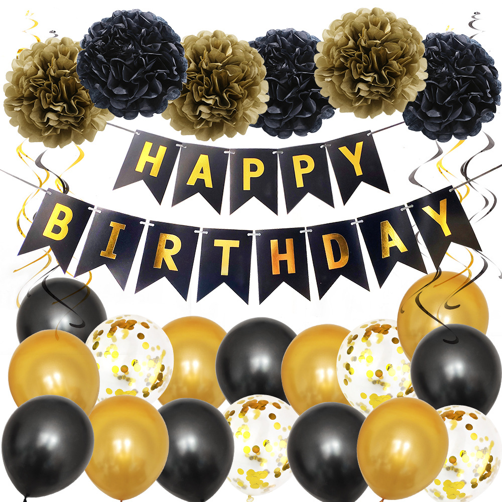 16 x 12" balloons (6 Black, 6 gold, 4 gold confetti)