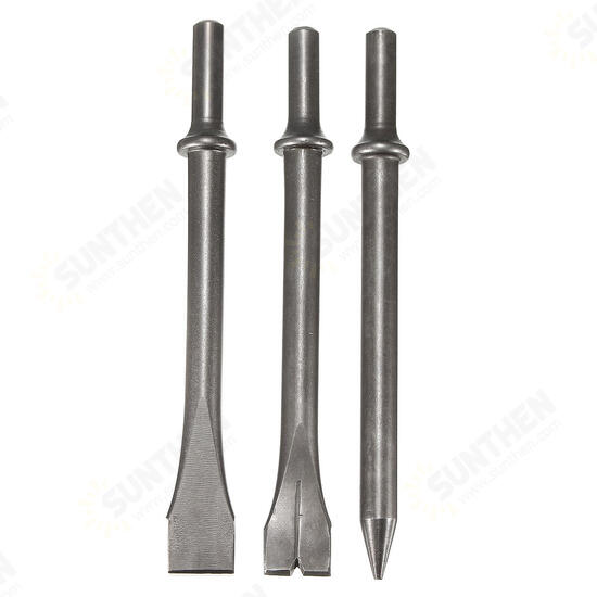 3 Pcs 7inch Length Air Hammers Punch Chipping Chisel Set Round Bar Tool Accessory