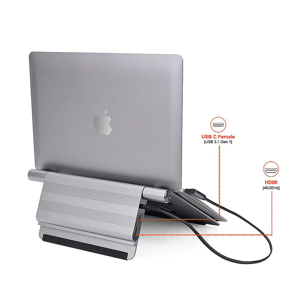 Pobod 5 in 1 Type-C Docking Station USB3.1 Gen1 5Gbps USB3.0 4K/30Hz HDMI USB Hub Portable Heat Disspation Stand for Laptop
