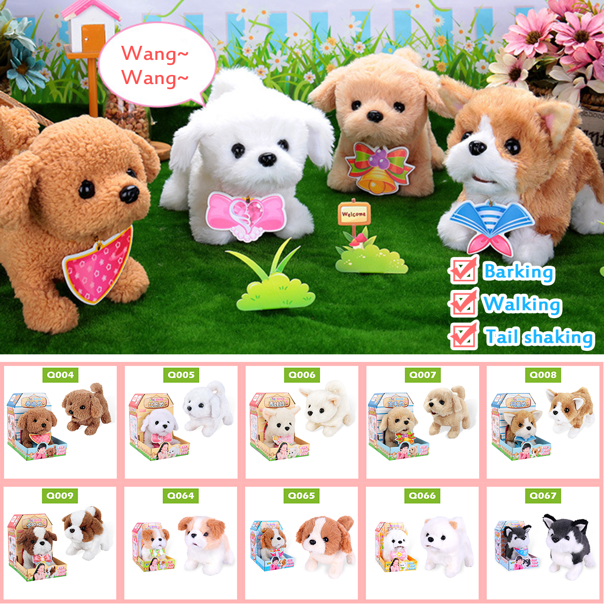 Cute Electronic Plush Stuffed Walking Tail Shaking Barking Pet Dog Toy for Kids Developmental