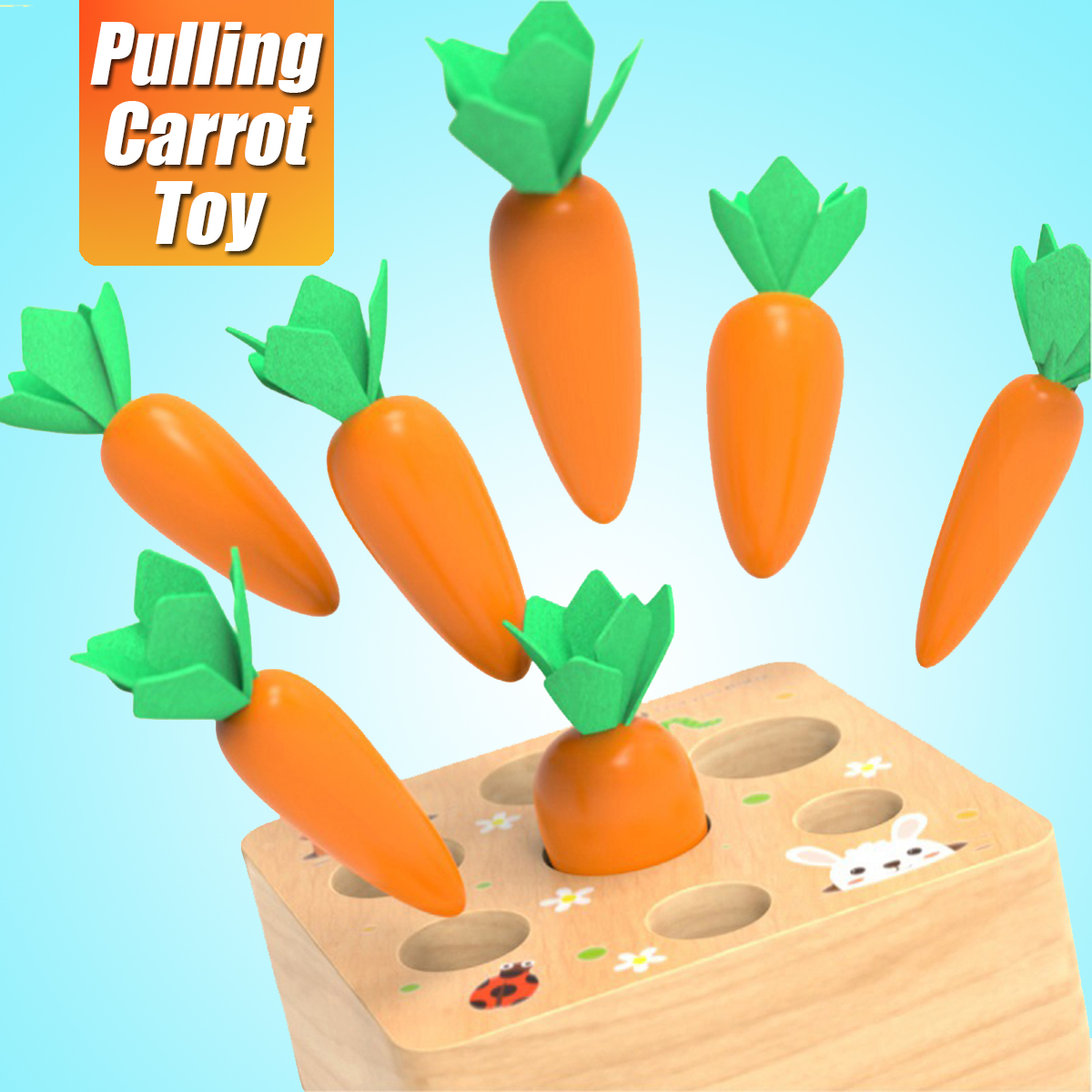 Kids Wooden Building Blocks Pulling Carrot Game Children Early Educational Toys