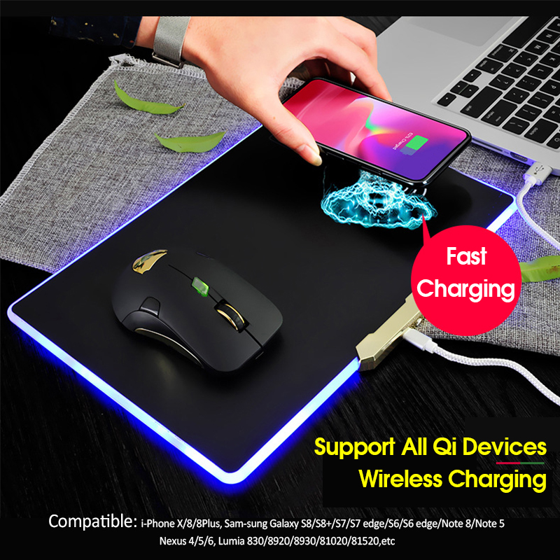 Wireless Charger Charging Backlit Mouse Pad+2.4G Wireless Gaming Mouse For Qi-enabled Devices