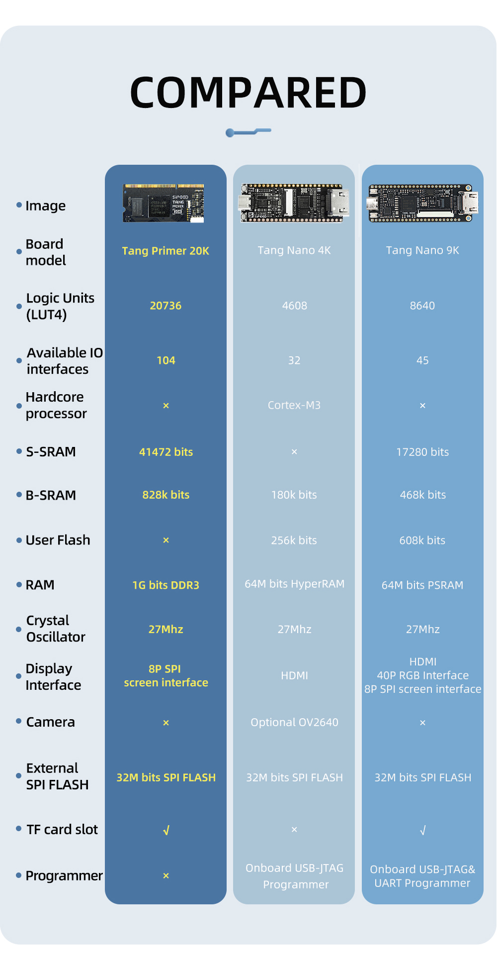 2. Primer 20K core board uses GW2A-LV18PG-256C817 designed by GOWIN Semiconductor as the-main chip