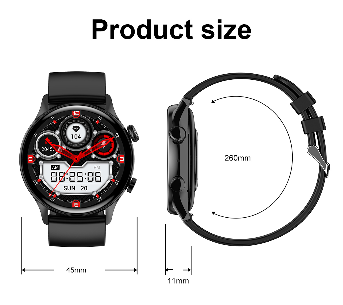 | Size | Dial Size: about 46*11 mm Strap Length: about 260 mm |