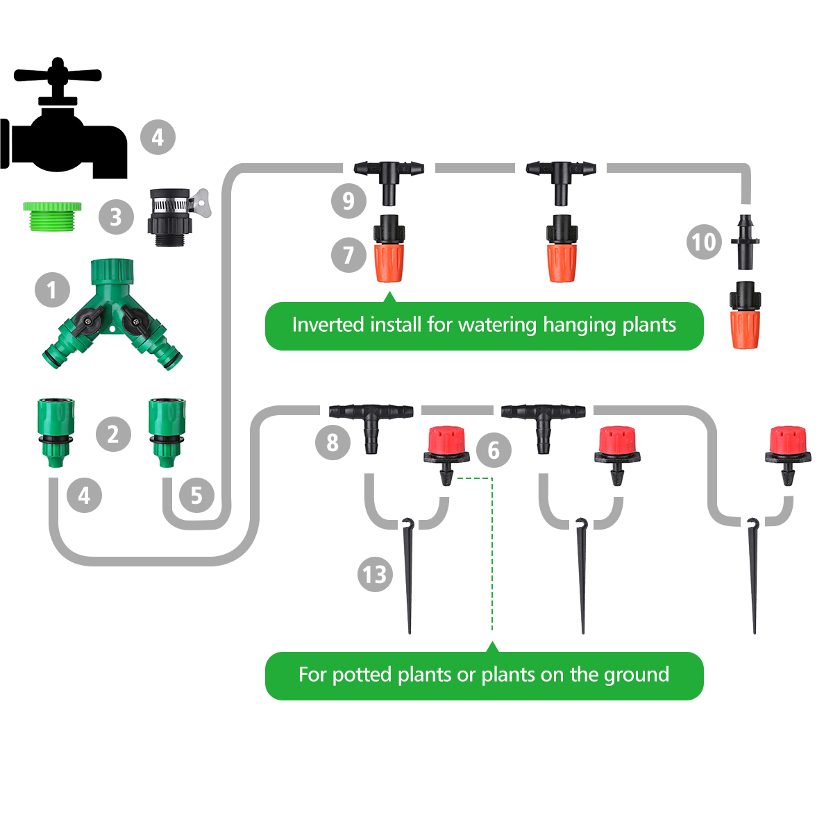 3.Save Your Time and Water-Normal tap water can be used directly. It can automatic irrigation when you turn on the faucet and can save up to 70% water.It is asy to assemble and disassemble and has long service life.